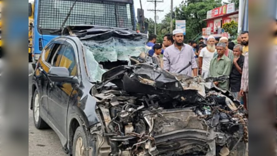 নিহতরা হলেন, ঢাকার উত্তরার বাসিন্দা গোলাম সারোয়ার (৪৩) ও তার মেয়ে মুসকান (৩)। একই ঘটনায় সারোয়ারের স্ত্রী উম্মে সালমা (৩৩), ছেলে ইমতিয়াজ আহমেদ (৯), চালক গিয়াস উদ্দিন (৩০) ও সহকর্মী সাগর (৩০) আহত হয়েছেন।
