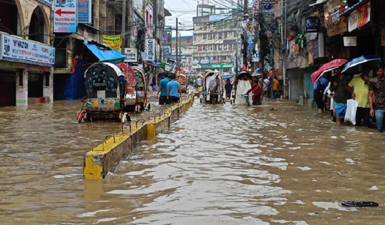 জলাবদ্ধতার কারণে কোথাও হাঁটু সমান আর কোথাও কোমর সমান পানিতে তলিয়ে গেছে নগরী। পানির নিচে গুরুত্বপূর্ণ সড়ক ও অলিগলি। ঘর থেকে বের হয়ে বিপাকে সাধারণ মানুষ।